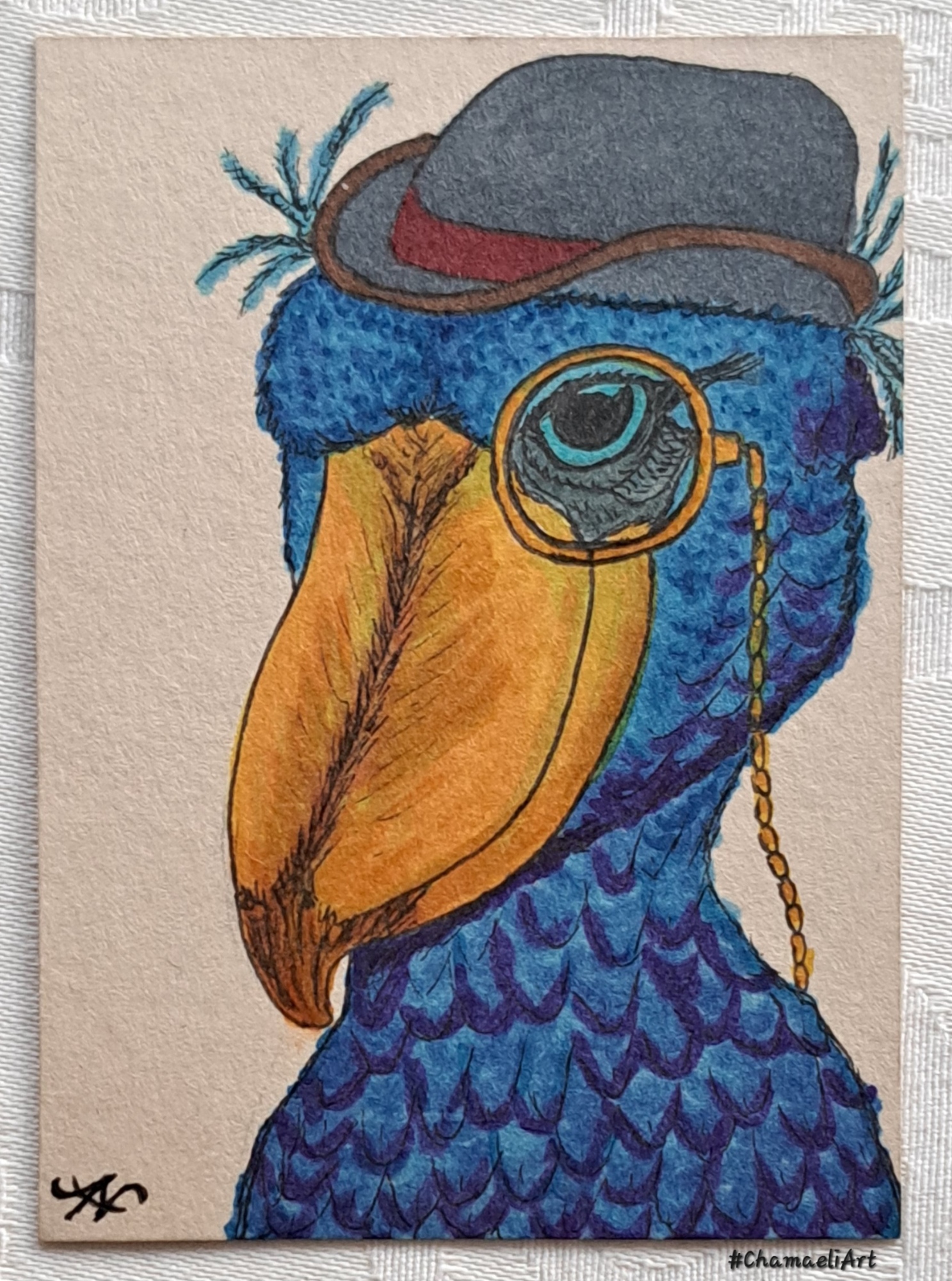 #AnimalMarch Schuhschnabel (nachgereicht) Dieser gediegene Herr Schuhschnabel wollte unbedingt noch aufs Papier. #ChamaeliArt #ATC #kleineKunstklasse #wattiskunst