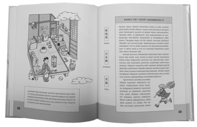 Hokusain oppipoika : Kaupunkielämää 1840-luvun Japanissa on konseptiltaan erikoinen kirja. Se on hieman leikekirjamainen siinä mielessä, että se koostuu lyhyistä tekstiosioista, joita rytmittää Moilasen runsas, humoristinen kuvitus. Sen lisäksi Tsuyuki Iitsun osuus on kerrottu sarjakuvamuodossa. Kirja väistämättä tuo mieleen lapsille ja nuorille suunnatut tietokirjat, vaikka sanoisinkin, että Hokusain oppipoika on suunnattu kaikenikäisille. Lopputulos on siis hieman hajanainen, eikä voi sanoa, että se olisi erityisen syväluotaava tietokirja aiheesta. Toisaalta, kirja on niin riemastuttavan persoonallinen, että en voi olla pitämättä tästä. Kevyttä aikamatkaa 1800-luvun Japaniin etsiville luvassa on visuaalisesti rikas ja mukanaan vievä kokonaisuus.
