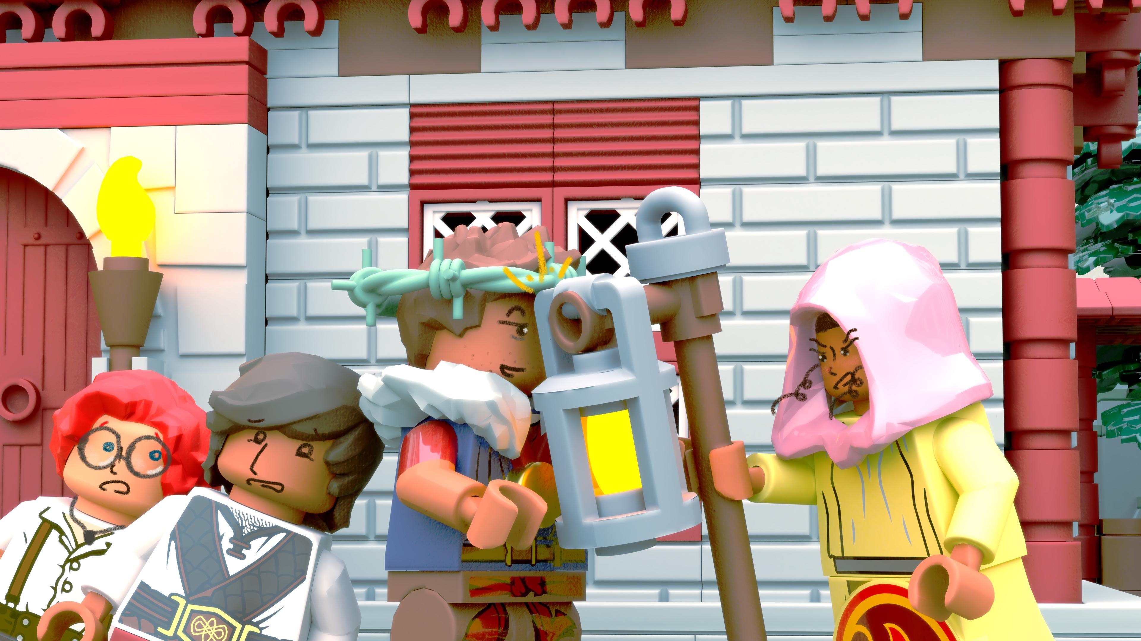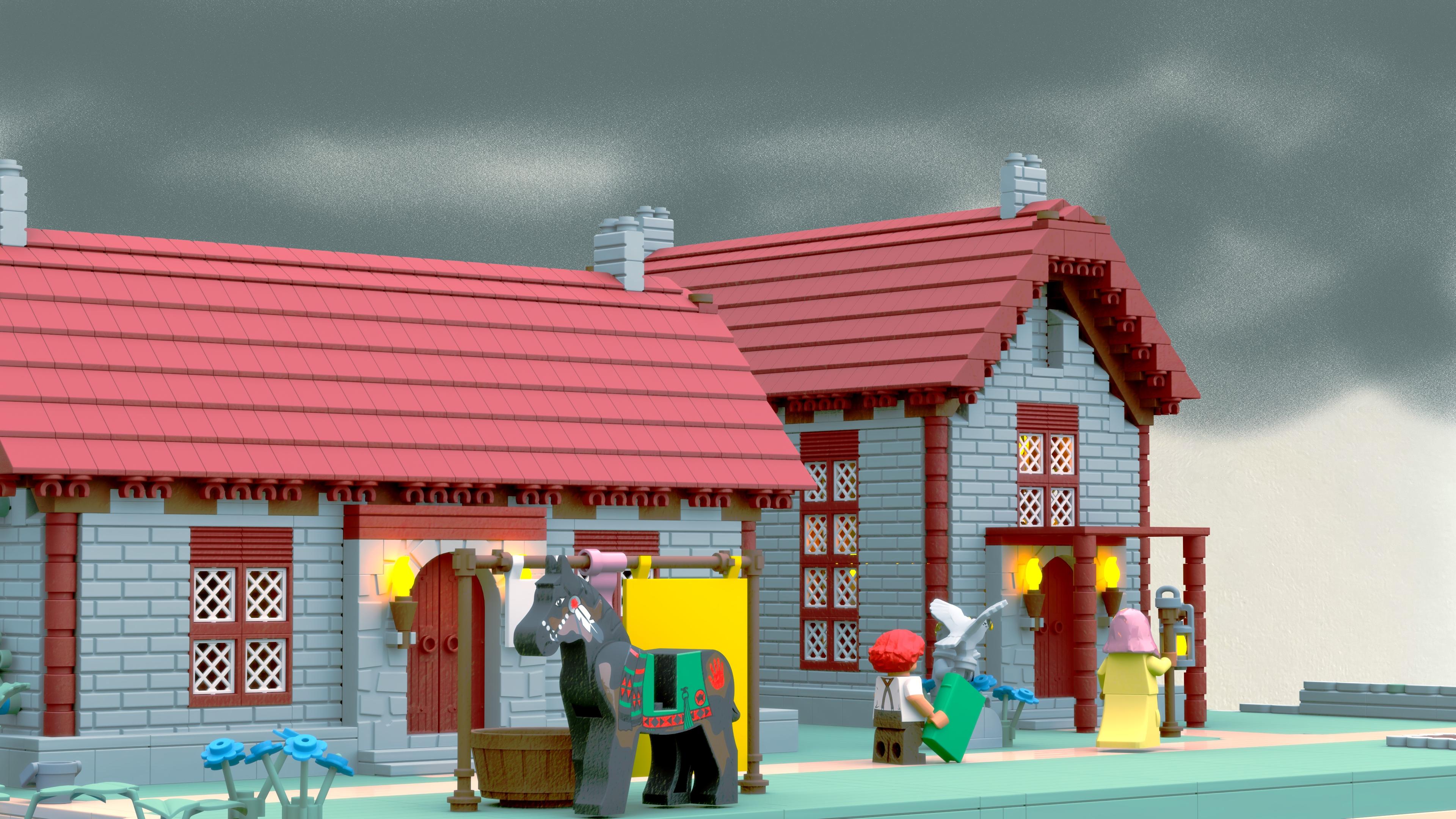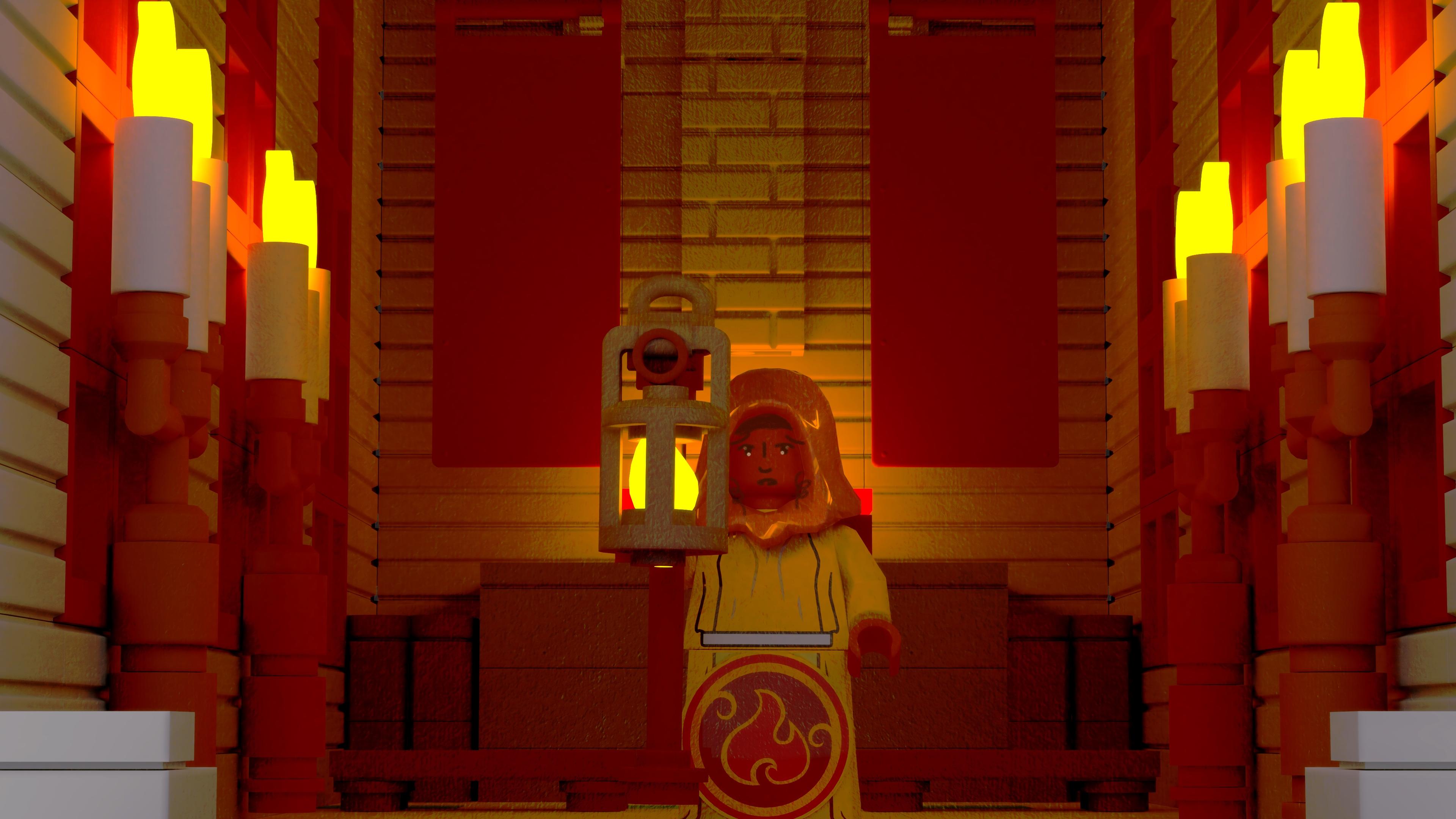 okay. I have finished redoing Act 1 Chapter 1 of Glory in the Thunder visual novel in the lego style. I am very happy with the results. There are fifty - FIFTY - rendered backgrounds just in this chapter, not counting the swappable face layers. Here are four of them. I hope you like my woobies