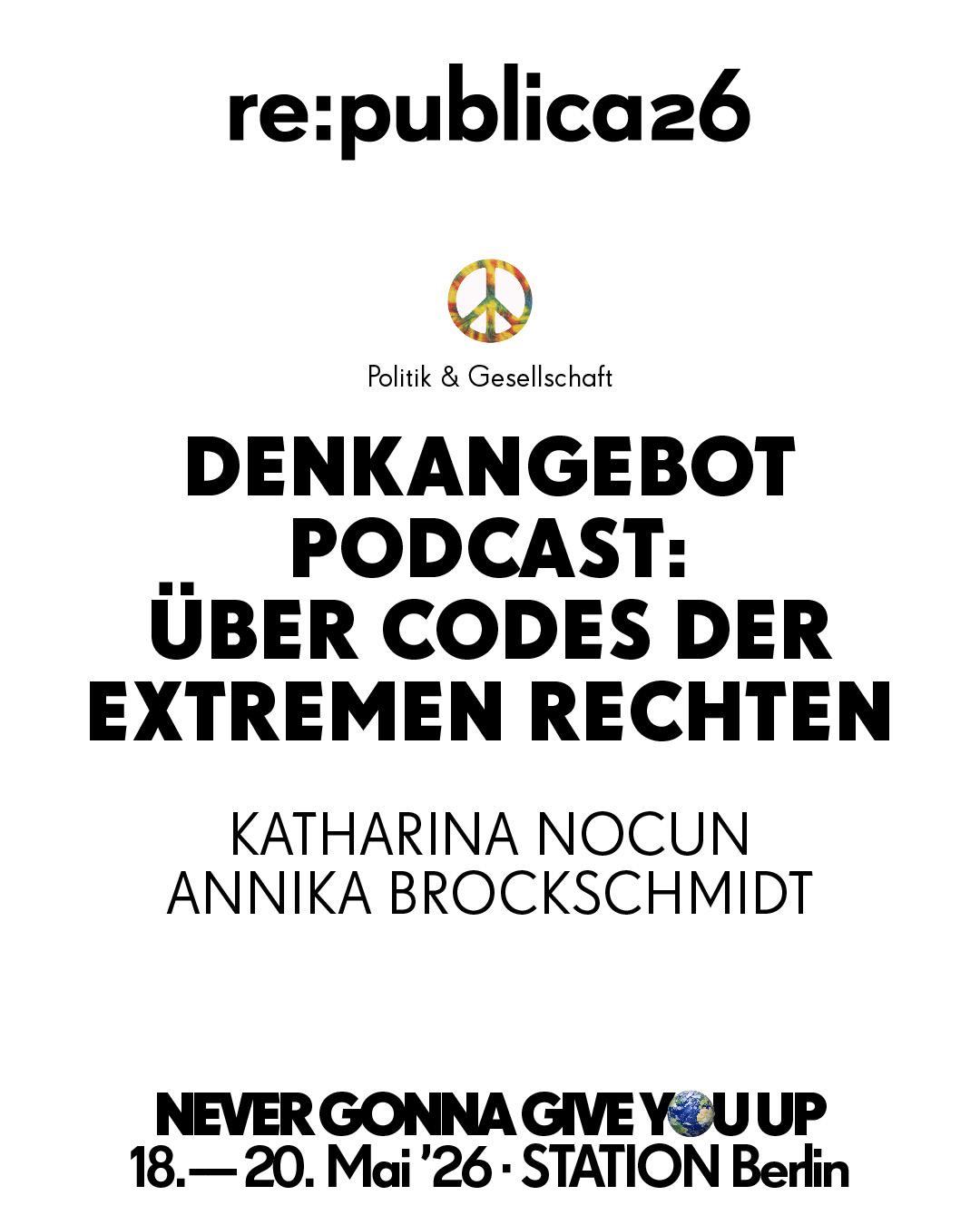 Warum sind Sprache und Memes derart mächtige politische Werkzeuge, wenn es darum geht, rote Linien zu verschieben? Auf der re:publica 26 entschlüsselt Katharina Nocun (@kattascha) in einer Live-Folge ihres Denkangebot-Podcasts gemeinsam mit der Autorin Annika Brockschmidt (@ardenthistorian) die Codes der extremen Rechten: