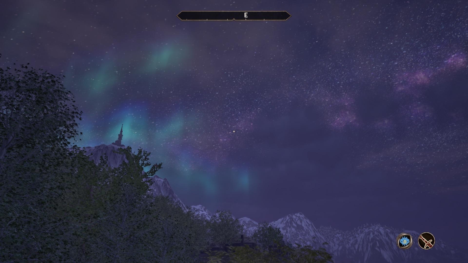 Not only am I enjoying the music, and the first person view, the night sky in the Heartlands is beautiful. The starry sky is even better than what it was in Morrowind, but we also have aurora! I forgot that.