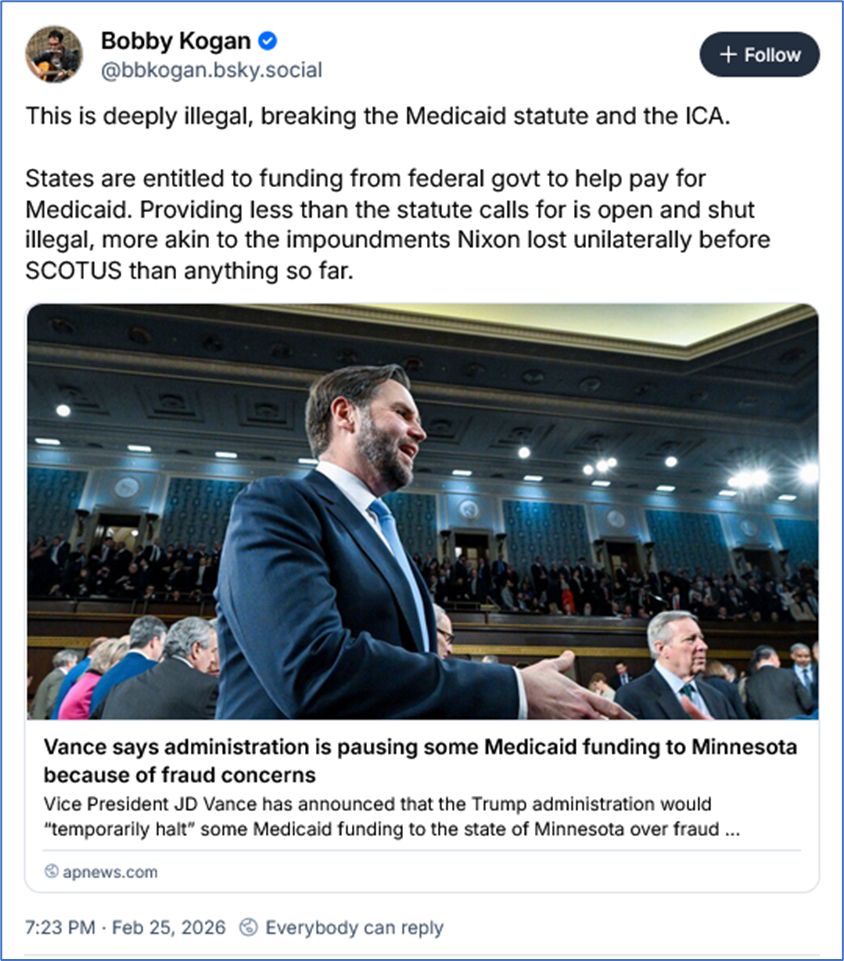 https://apnews.com/article/minnesota-medicaid-funding-fraud-trump-47b160fd664cdfeef355ae00ca5fecc0