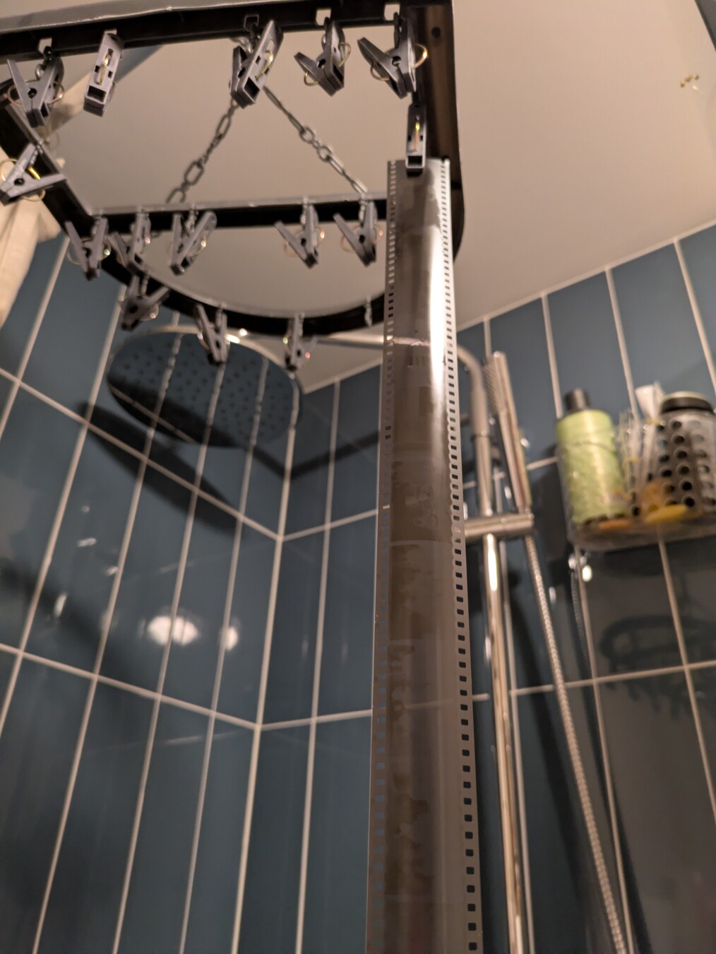 3. Freshly developed film drying on the socks hanger.