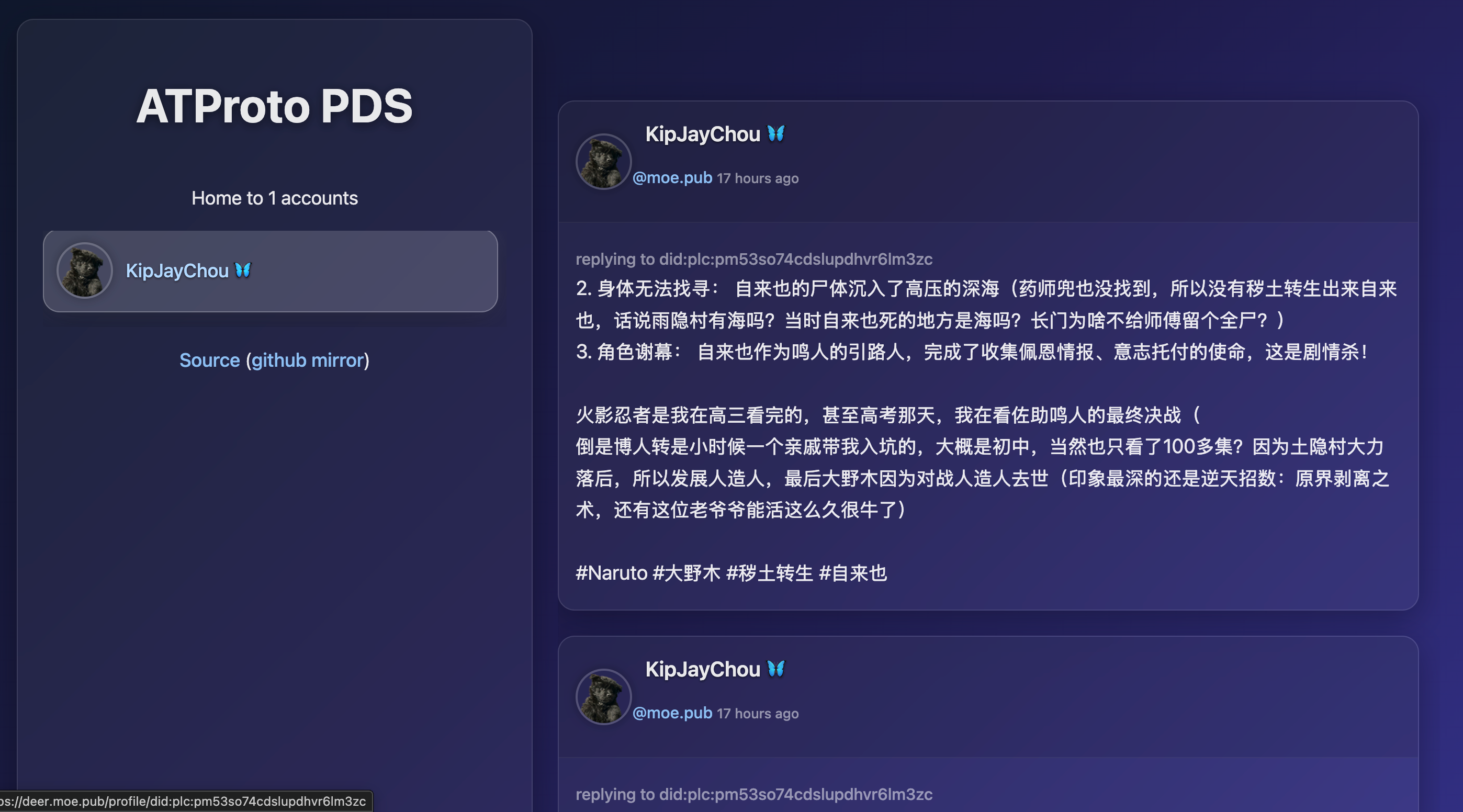 我的仓库:https://git.fedditlab.de/jay/pds-dash-moe-pub (添加Docker+Caddy部署、Glass主题)#pds #pdsdash #bluesky #atproto #moepub #forgejo