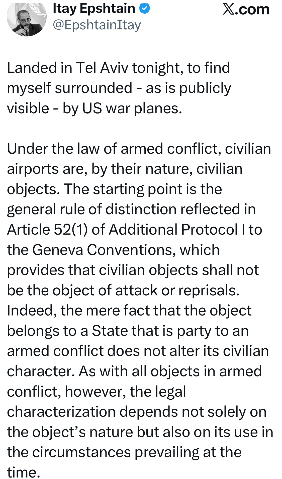 ️ The US and Israel are reportedly using Ben Gurion Airport for military purposes—which means they’re using civilians as human shields. -