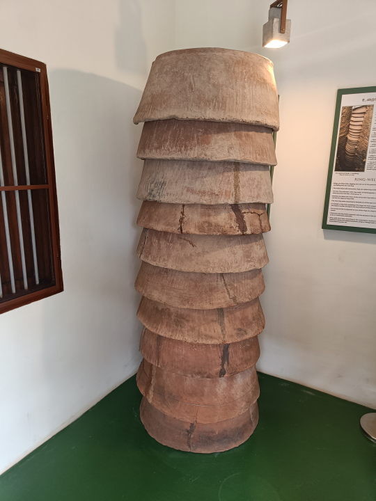 A ring well at the Keezhadi museum near Madurai. These rings were installed to protect the sides of the well after digging the shaft.Even today, you can find signs advertising "Ring work" all over south India. But they install concrete rings inside well shafts, and not terracotta ones.#history