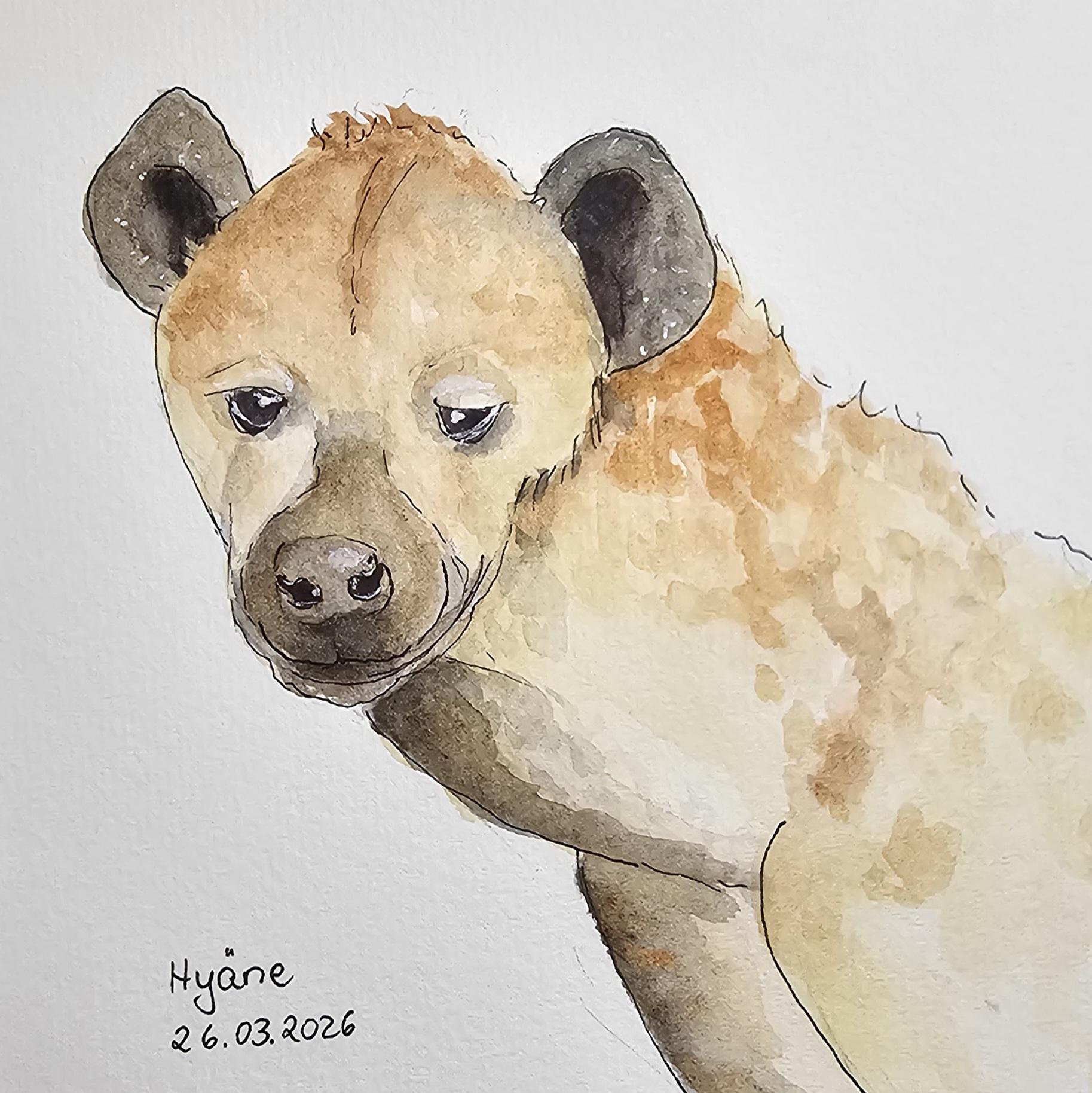 Vorgabe: Hyäne#KleineKunstKlasse #watercolor #animalMarch #watercolorsketchbook #watercolour