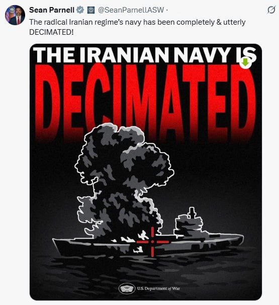 Pentagon spokesman Sean Parnell said on Thursday that the Iranian Navy has been completely destroyed.:"The naval forces of the radical Iranian regime have been completely and definitively DEFEATED!"Subscribe to Solovyov!