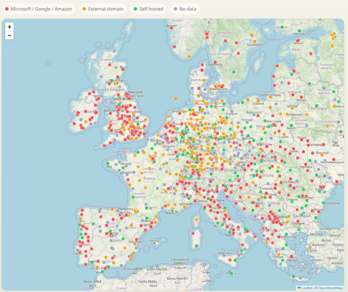 What's the state of digital sovereignty for our academic landscape?Inspired by a similar post looking at digital sovereignty of municipalities, I explored what messaging infrastructure universities rely on. Sadly, many have switched to hyper scalars but few large universities keep running their own email infrastructure. Germany, Austria, France does not look too bad and lead by example.Check out the interactive map: https://nebelwelt.net/gannimo/unimx/