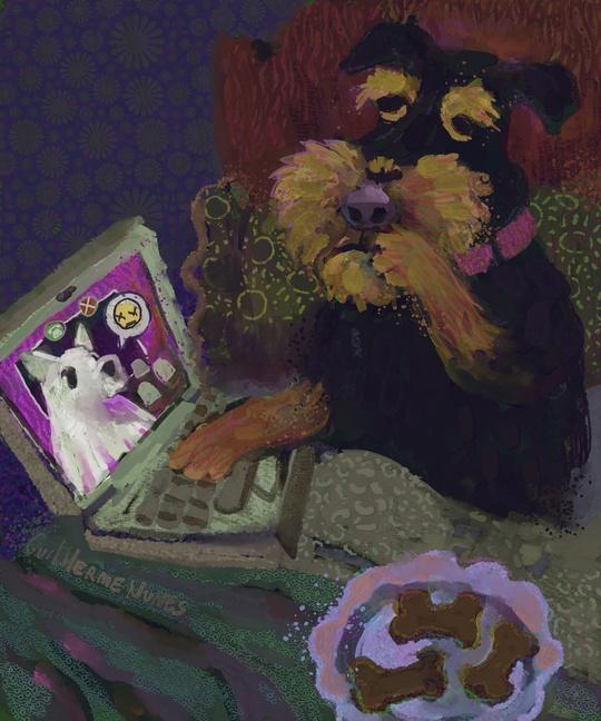 puppy doesnt quite know how to deal with the fact that his virtual friend turned out to be a ghost who can access the world wide web.