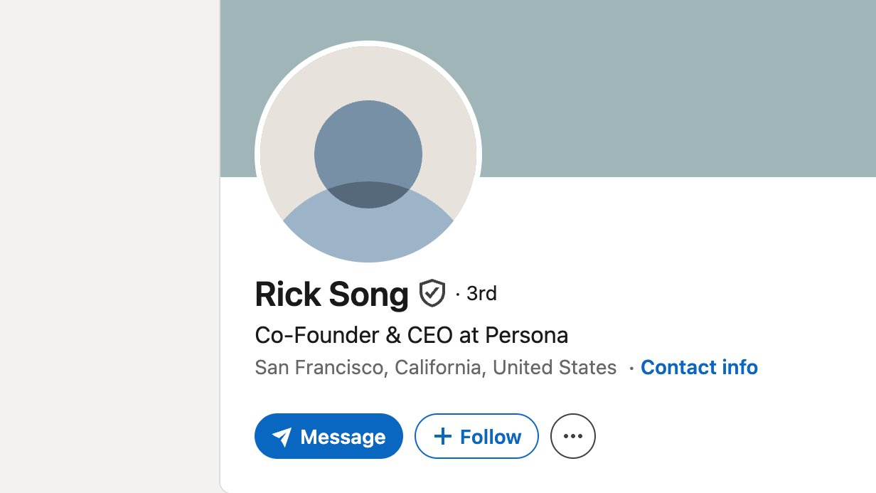 ❗️The CEO of Persona, the company that processes your passport, selfie, and facial geometry so you can get a verified badge on LinkedIn, doesn't have a profile picture on LinkedIn.