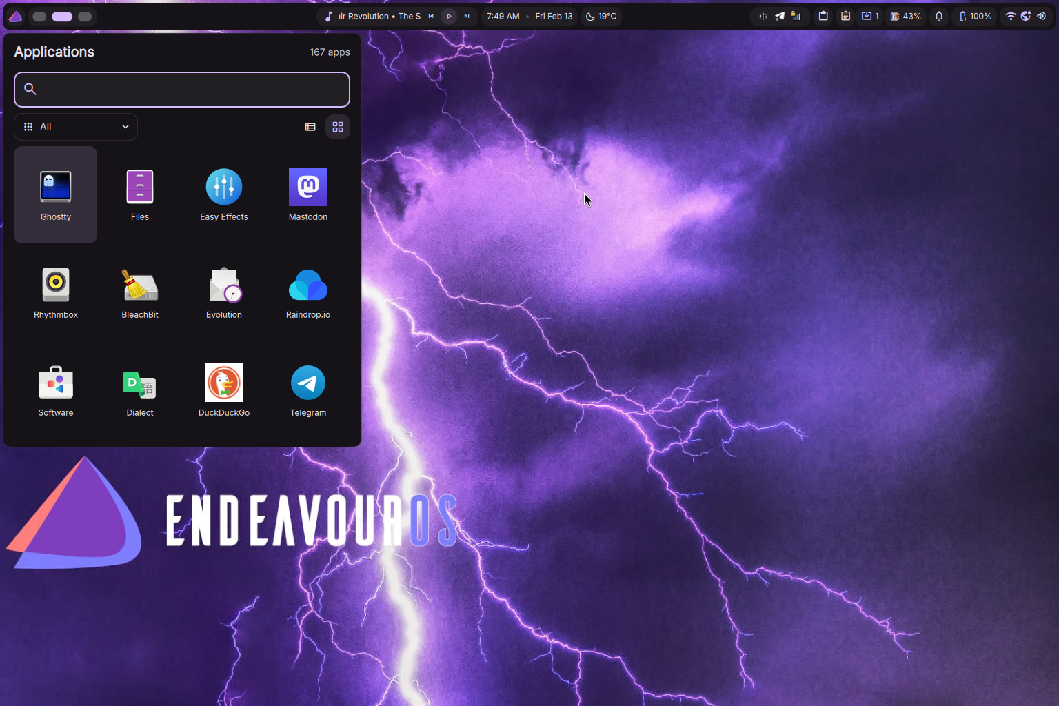 y en este #viernesdeescritorio, experimentando y teniendo una buena experiencia con #niri y #dank sobre #EndeavourOS.