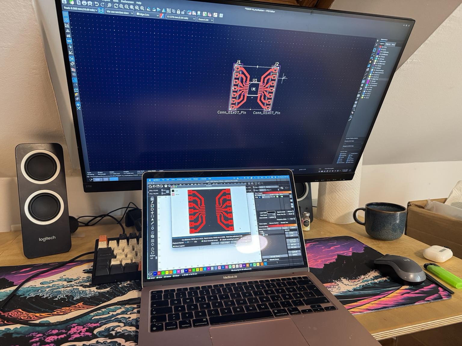@0x3f breadboards are great because you can quickly reconfigure them. I usually start by making breakout boards for my components for breadboards, and then go to a PCB when I know it works. I am however thinking about trying manhattan construction for prototyping, which has the best of both worlds and also a solid ground plane.You can go crazy with the laser PCBs, I’ve seen people do double sided layouts, laser drilling, edge cuts, solder mask, solder paste stencils. vias tho are kinda a pain tho, no matter how you do them. I usually just go for the simple 1 layer boards.