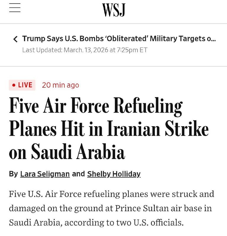 Irán poškodil päť tankovacích lietadiel amerického letectva pri útoku na leteckú základňu princa Sultána v Saudskej Arábii.